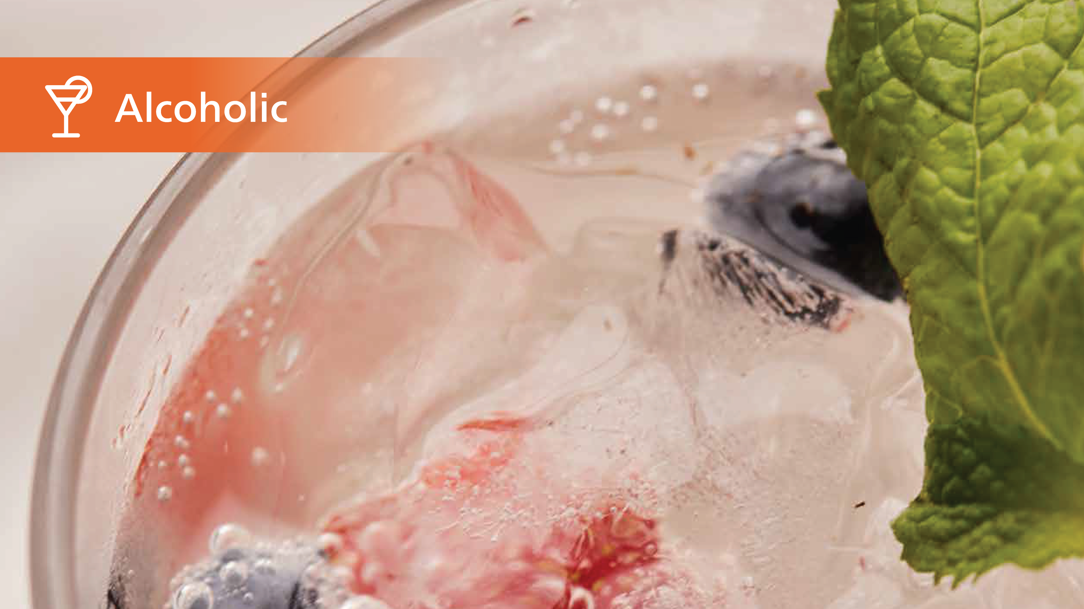 • Top with sparkling water, stir and serve in ice filled glasses; garnish with mint leaves as desired