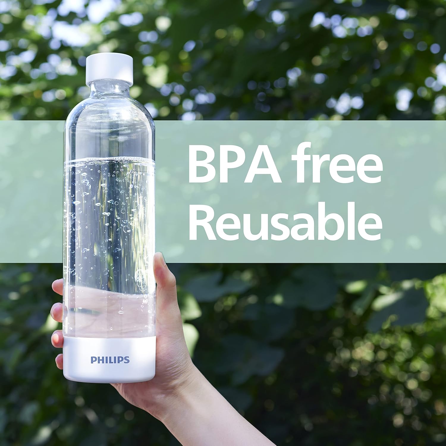 PHILIPS Carbonating Bottles, 1L Twin Pack Reusable PET Sparkling Water Bottles Compatible Sparkling Water Maker, 2 Pack